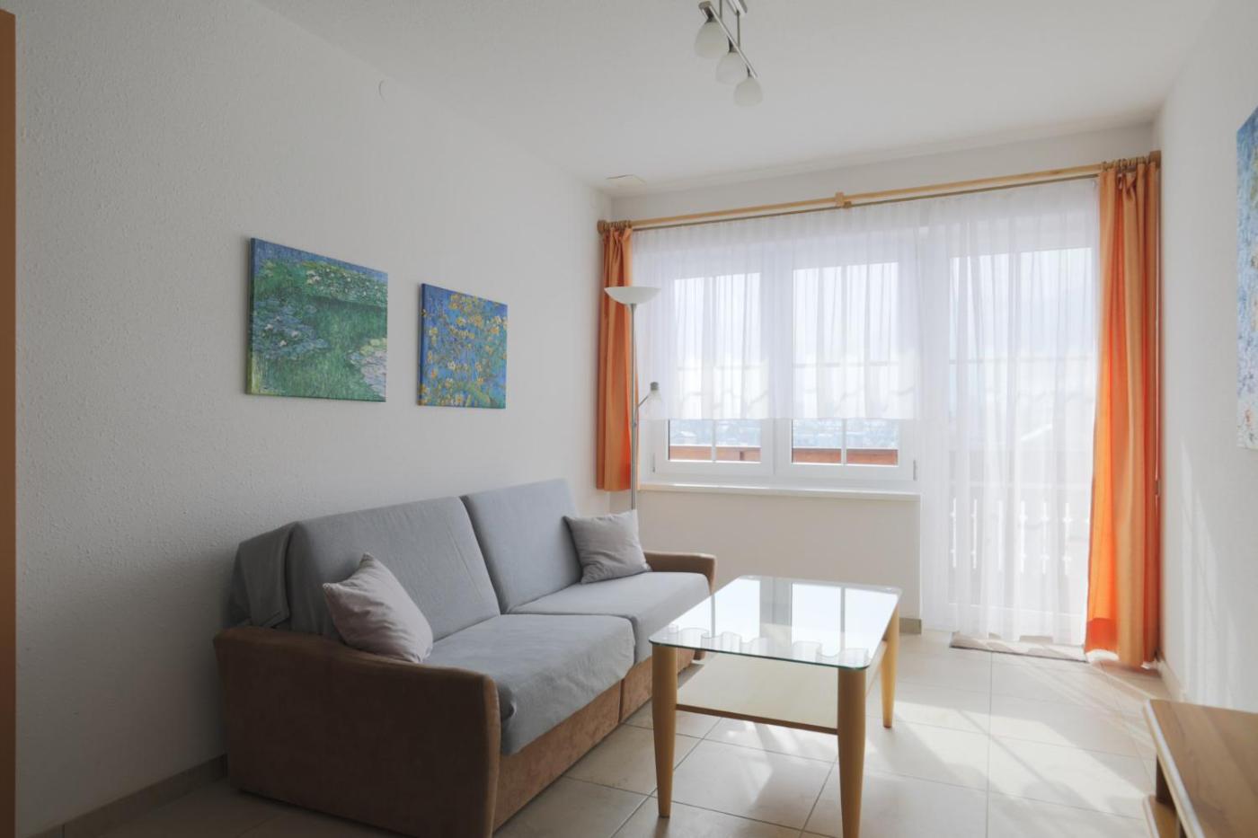 One-Bedroom Apartment with Balcony. This apartment comes with free WiFi, a balcony with mountain views, a TV with cable channels, a fully equipped kitchenette with a seating area, a living room with a sofa bed, and a private bathroom with a shower. ;