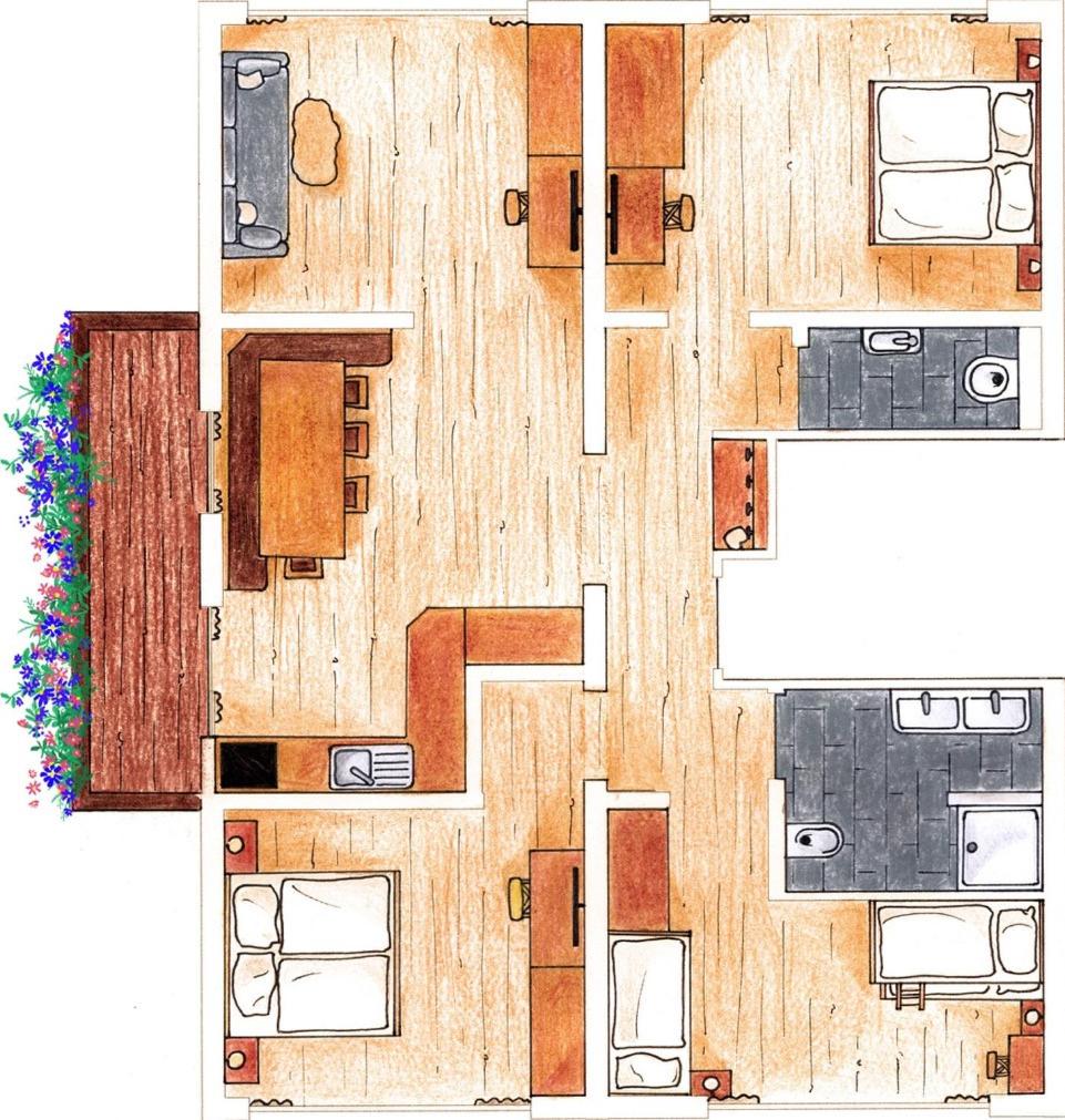 Three-Bedroom Apartment. This spacious apartment features 1 living room, 3 separate bedrooms and 1 bathroom with a shower and a hairdryer. The fully equipped kitchen has a stovetop, a refrigerator, a dishwasher and kitchenware. Boasting a balcony with garden views, this apartment also features soundproof walls and a flat-screen TV with cable channels. The unit has 6 beds. ;