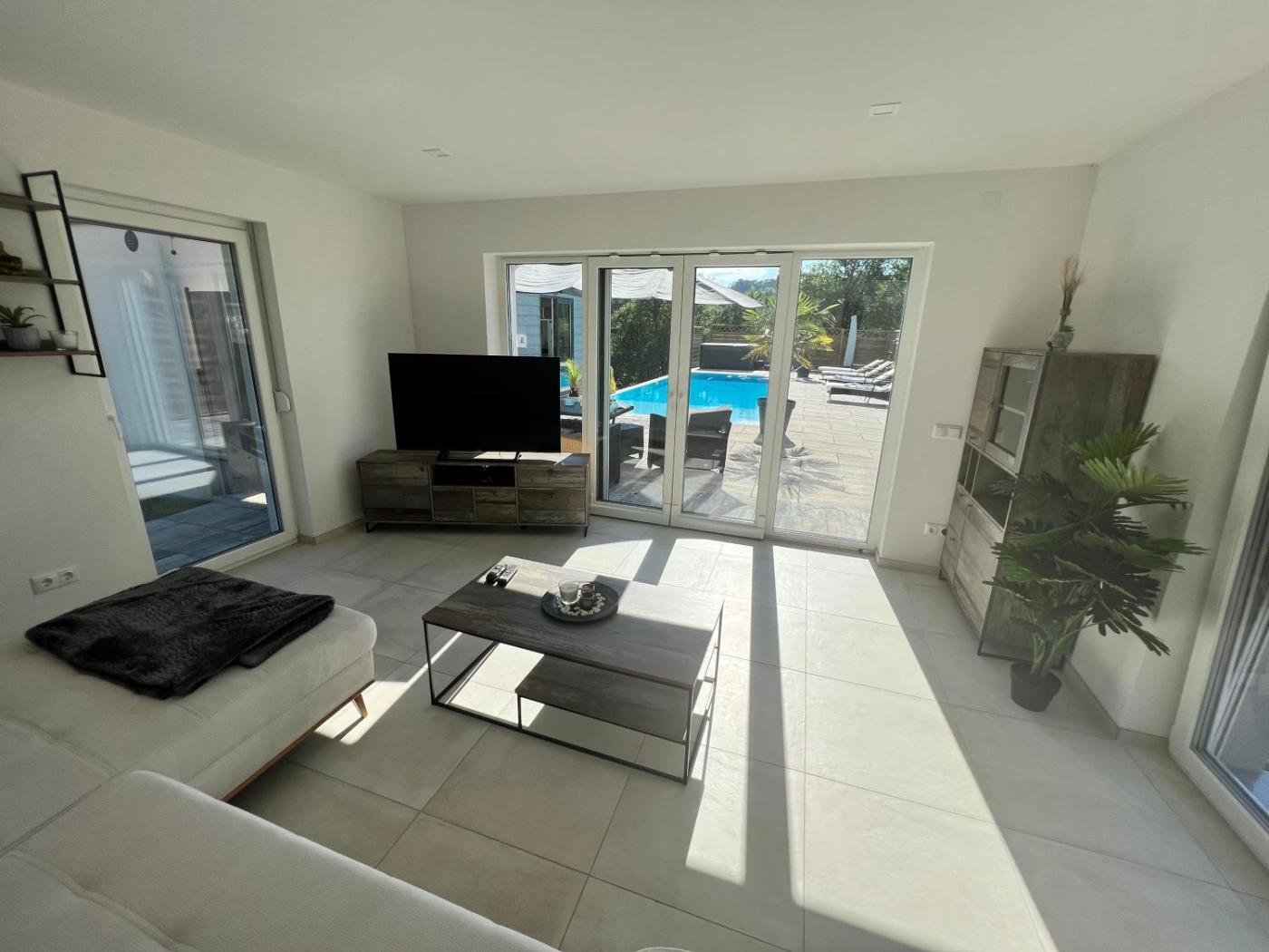 One-Bedroom Apartment. This apartments standout features are the pool with a view and hot tub. Featuring a private entrance, this apartment comprises 1 living room, 1 separate bedroom and 1 bathroom with a walk-in shower. Meals can be prepared in the kitchen, which comes with a stovetop, a refrigerator, a dishwasher and kitchenware. Boasting a terrace with garden views, this apartment also provides a tea and coffee maker and a flat-screen TV with satellite channels. The unit offers 2 beds. ;
