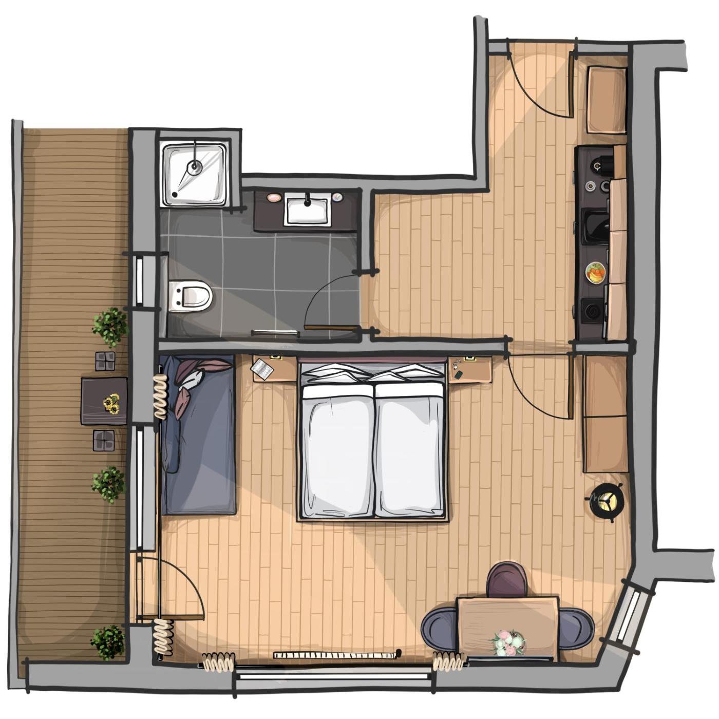 Two-Bedroom Apartment. This spacious apartment includes 1 living room, 2 separate bedrooms and 2 bathrooms with a walk-in shower and a hairdryer. Meals can be prepared in the kitchen, which is fitted with a stovetop, a refrigerator, a dishwasher and kitchenware. Boasting a balcony with garden views, this apartment also offers a tea and coffee maker and a flat-screen TV with cable channels. The unit has 5 beds. ;