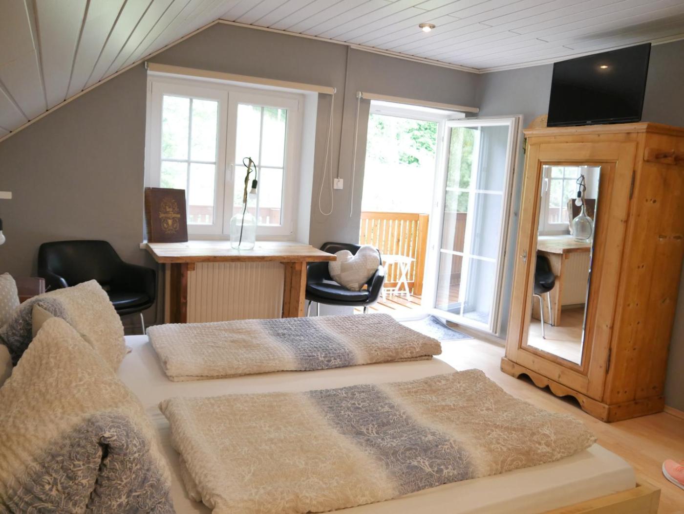 Double Room with Balcony. The double room provides tumble dryer, a high chair for children, as well as a private bathroom boasting a shower and a hairdryer. Guests can make meals in the kitchen that is fitted with a stovetop, a refrigerator, a dishwasher and kitchenware. Featuring a terrace, this double room also offers a washing machine, a coffee machine and a flat-screen TV with satellite channels. The unit offers 1 bed. ;