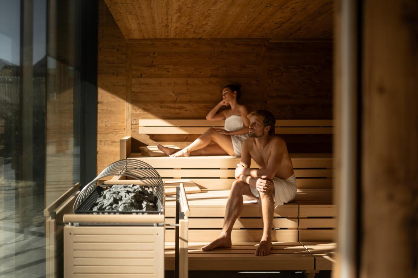 Suite with Sauna. Guests will have a special experience as this suite features a sauna. This suite is comprised of 1 living room, 1 separate bedroom and 1 bathroom with a walk-in shower and free toiletries. The well-equipped kitchen features a stovetop, a refrigerator, a dishwasher and kitchenware. Featuring a balcony with mountain views, this suite also offers a tea and coffee maker and a flat-screen TV with cable channels. The unit offers 2 beds. ;