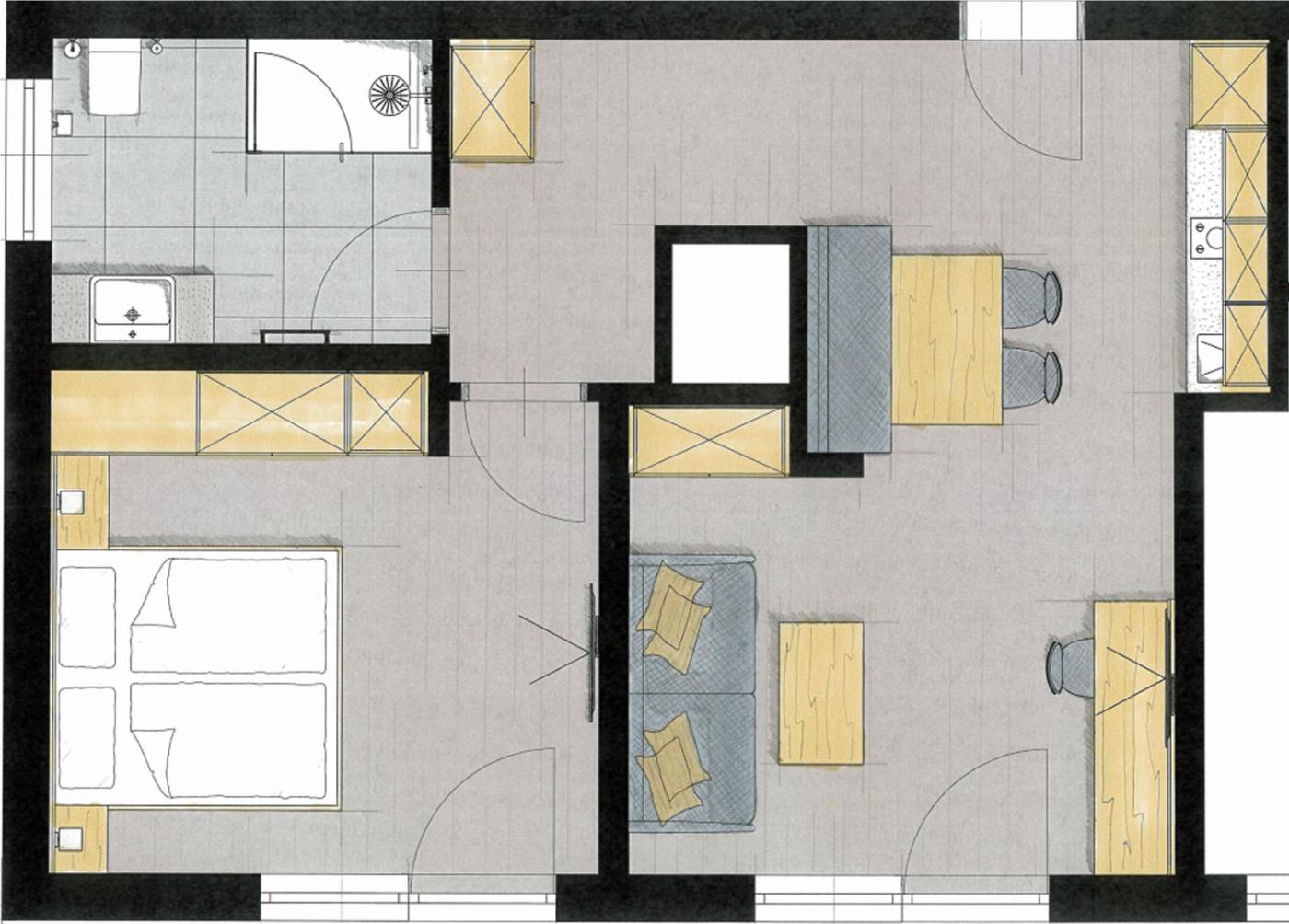 One-Bedroom Apartment. This apartment consists of 1 living room, 1 separate bedroom and 1 bathroom with a walk-in shower. The fully equipped kitchen features a stovetop, a refrigerator, a dishwasher and kitchenware. Featuring a balcony with mountain views, this apartment also provides soundproof walls and a flat-screen TV with cable channels. The unit offers 2 beds.