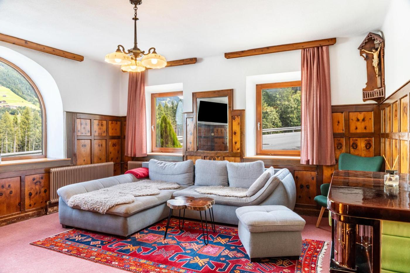 The spacious holiday home features 12 bedrooms, 6 bathrooms, bed linen, towels, a TV with streaming services, a fully equipped kitchen, and a balcony with mountain views. The accommodation offers a fireplace.