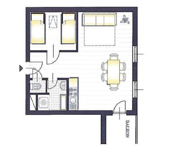 One-Bedroom Apartment with Balcony. Equipped with wooden panels and furnishings, this country-style apartment comes with a twin room and a living room with a fully equipped kitchenette with a dishwasher, a dining area, satellite TV and a sofa bed for 2. The bathroom comes with shower and the toilet is separated. It furthermore features tiled floors with an underfloor heating and a balcony with mountain views. ;