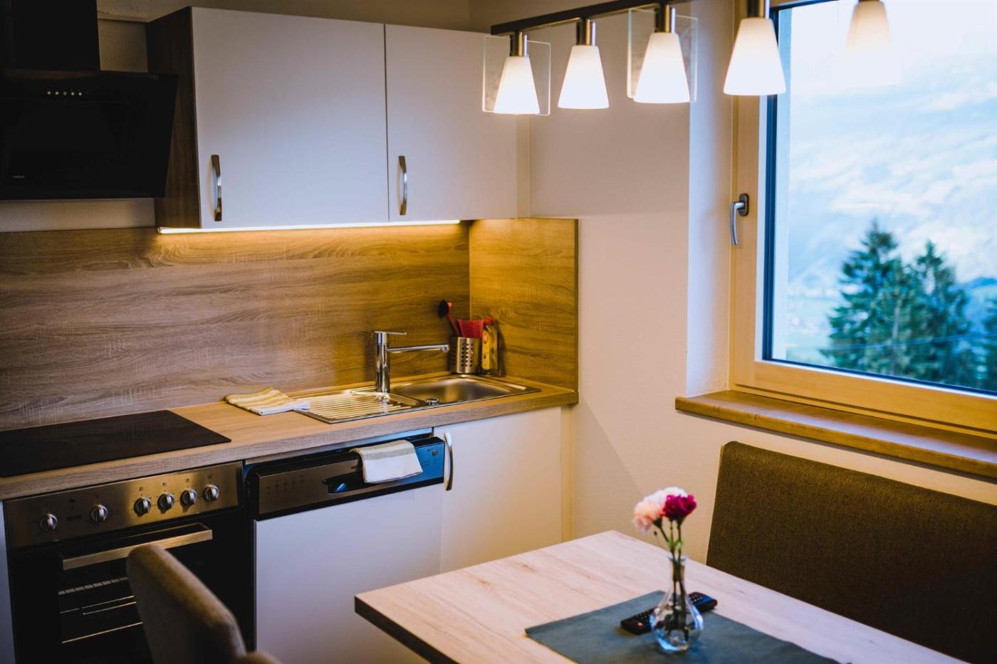 Two-Bedroom Apartment. Guests can make meals in the kitchen that has a stovetop, a refrigerator, a dishwasher and kitchenware. The apartment has parquet floors, a seating area with a flat-screen TV, a private entrance, a coffee machine as well as mountain views. The unit has 2 beds.