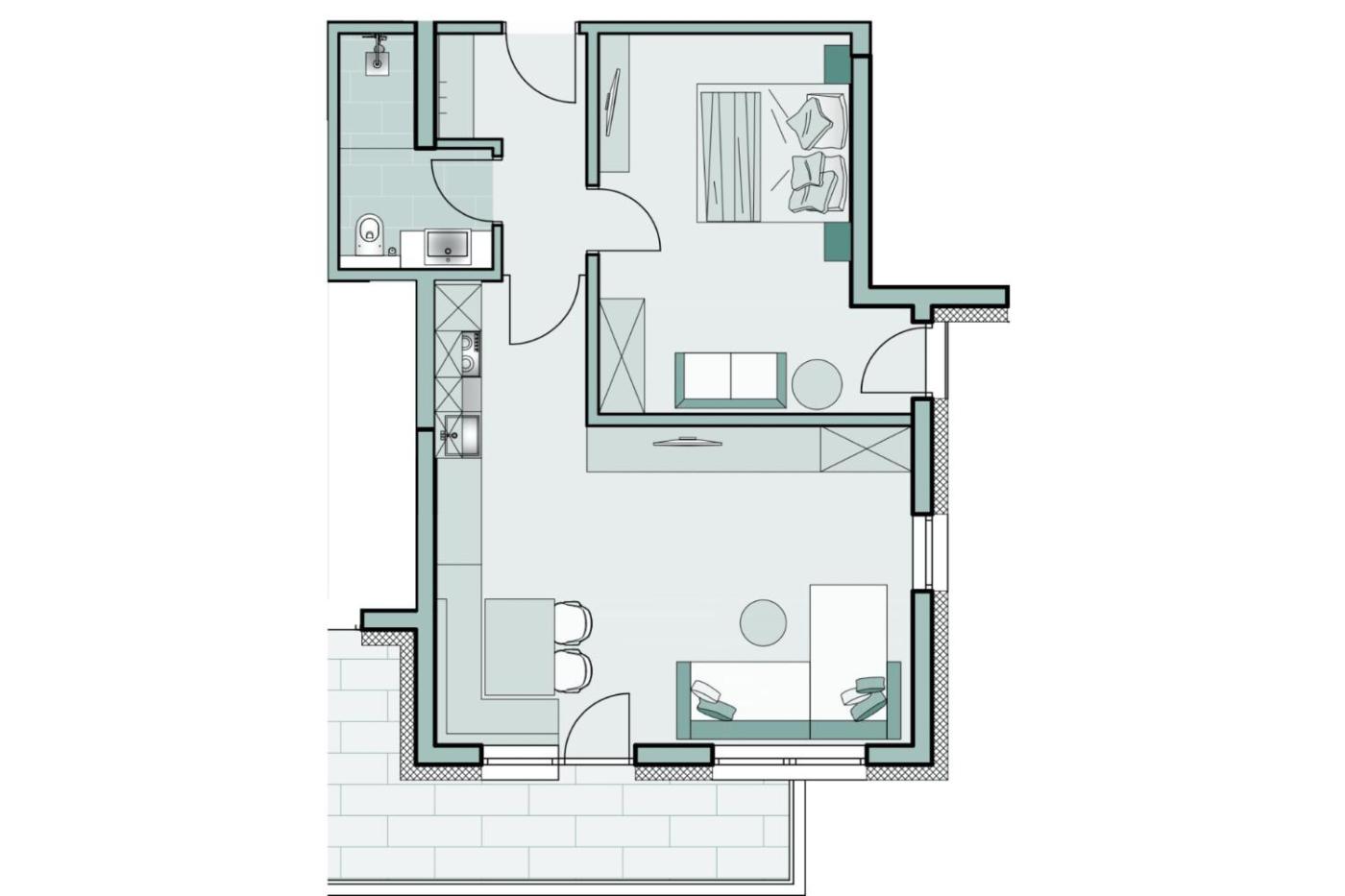 Two-Bedroom Apartment with Balcony and Terrace - Annex. The unit offers 3 beds.