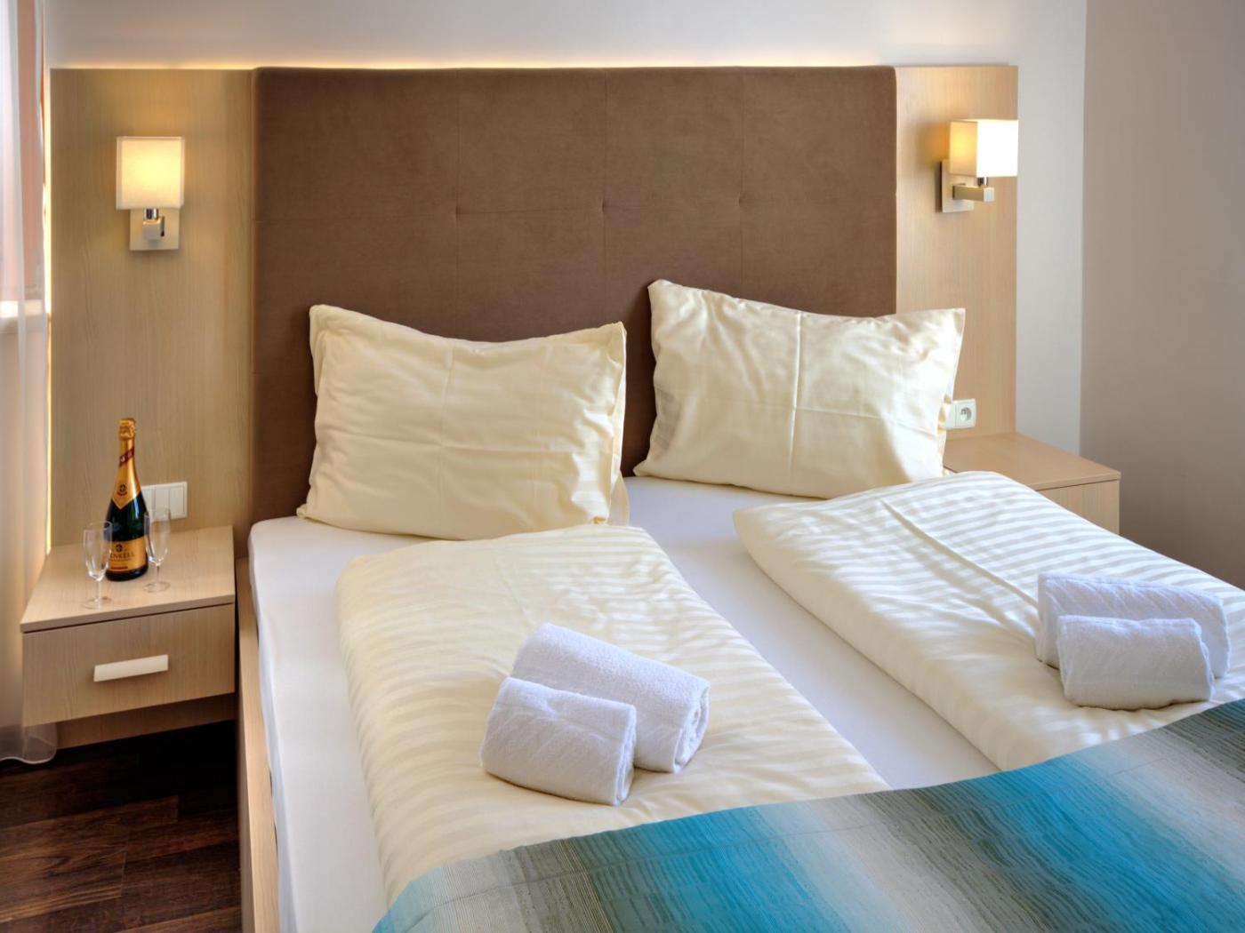 Deluxe Quadruple Room. The quadruple room includes a private bathroom equipped with a walk-in shower, a bath or a shower and a hairdryer. The quadruple room offers a wardrobe, a safe deposit box, an electric kettle, a sofa, as well as a flat-screen TV with streaming services. The unit offers 4 beds.