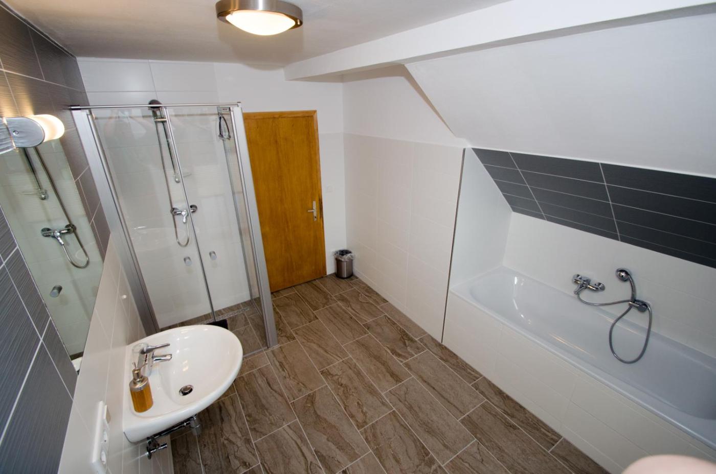 Large One-Bedroom Apartment. This apartment on the upper floor offers a balcony, a fully equipped kitchen with dining area, a bathroom with bath and a separate toilet. ;