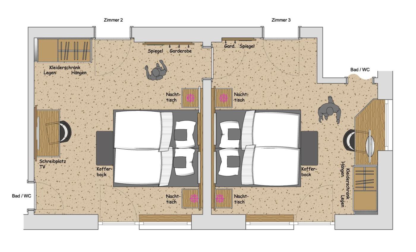 Apartment with View. The apartment has 2 double rooms. The rooms have a double bed. Each room has an own bathroom with shower and WC, and also a TV. The Kitchen is fully equipped. The apartment has a balcony ;