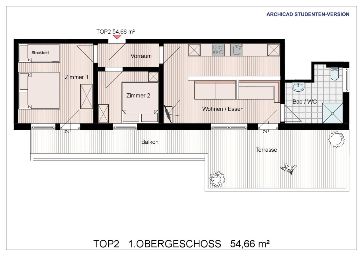 Two-Bedroom Apartment. This apartment has a sun terrace with mountain views. A bedroom with a double bed and a bedroom with 2 bunk beds are also featured. The unit has a kitchenette, dining area, a living room and TV. ;
