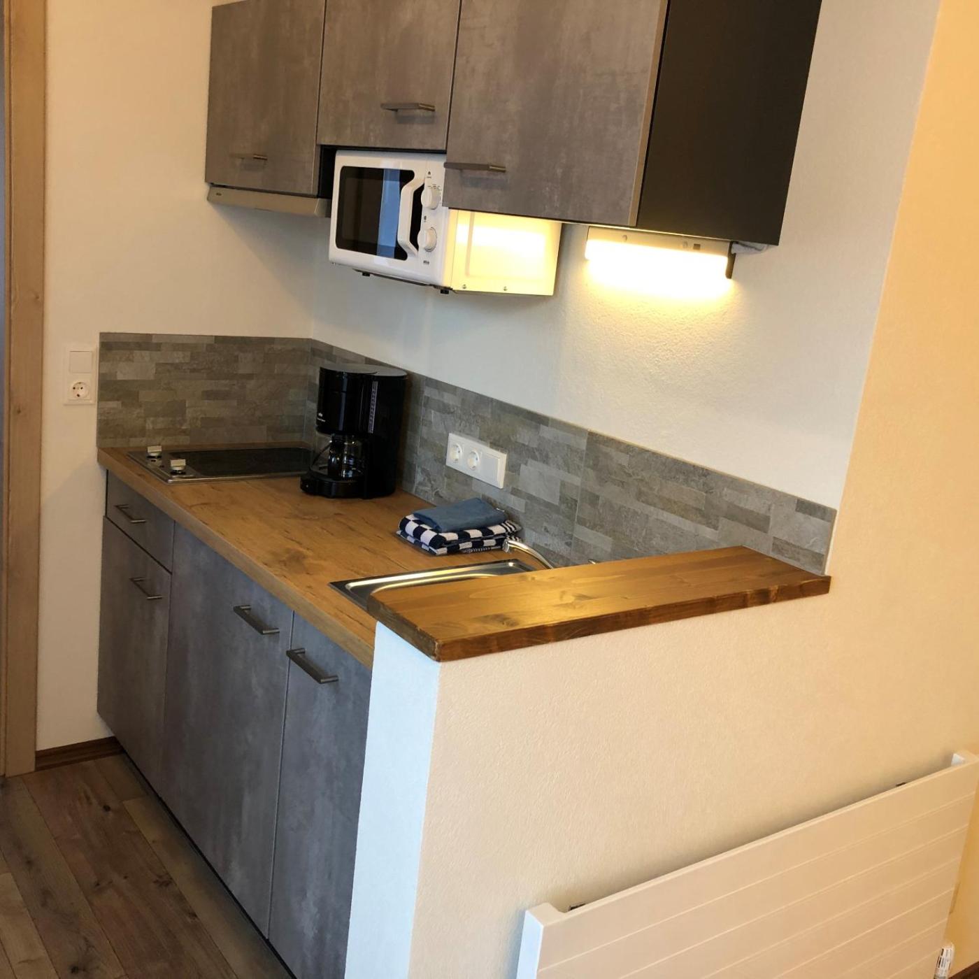 Studio with Balcony. The well-fitted kitchenette features a stovetop, a refrigerator, kitchenware and a microwave. This studio includes a flat-screen TV with satellite channels, a private bathroom as well as a balcony with mountain views. The unit offers 1 bed. ;