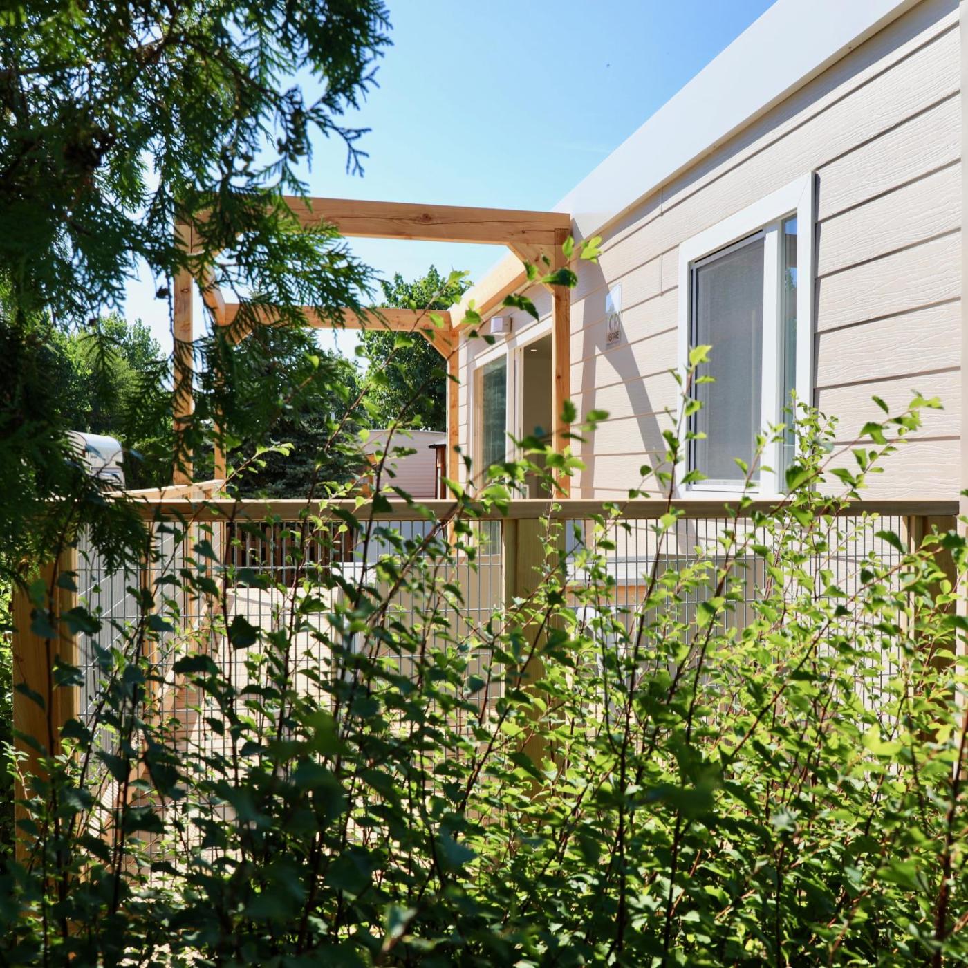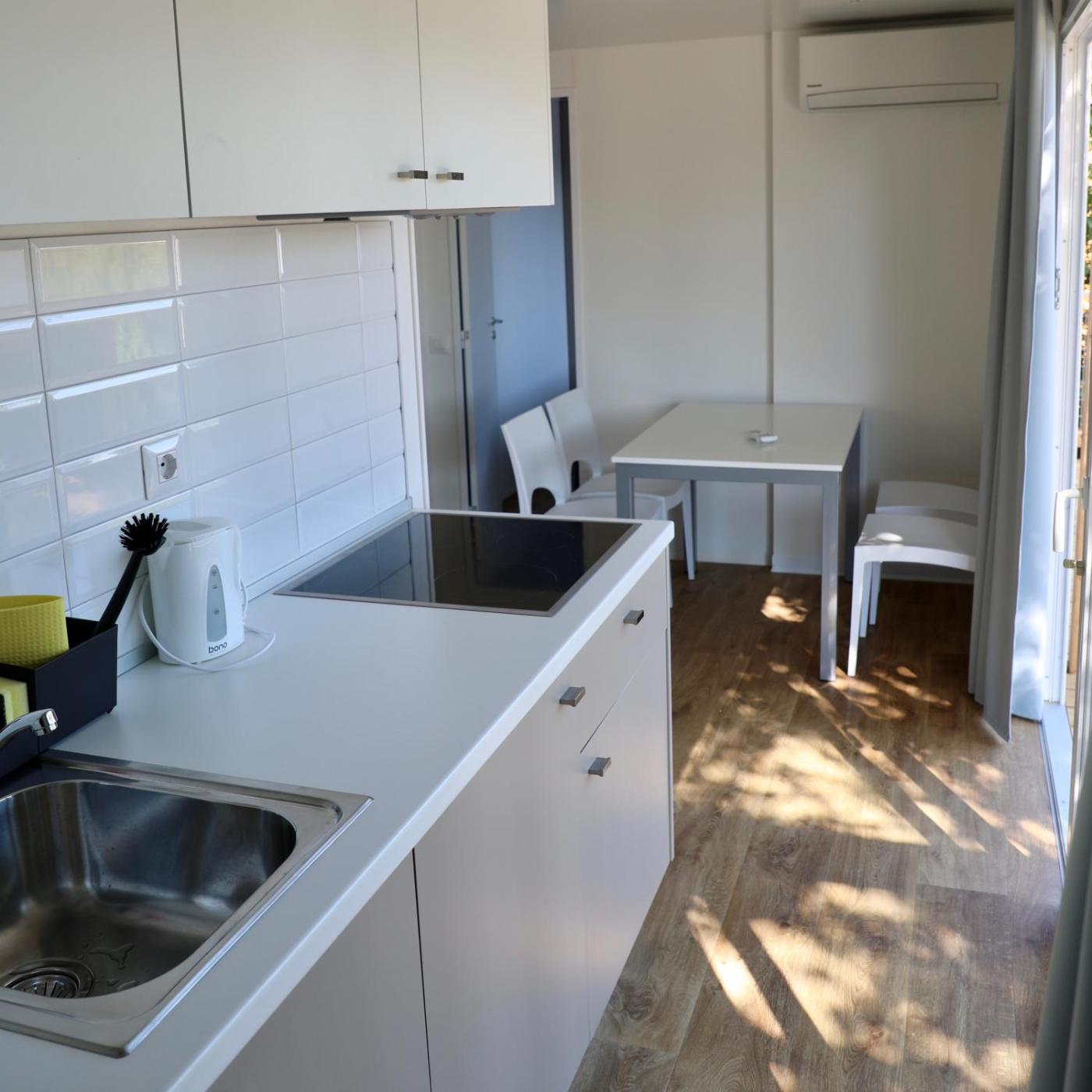 Mobile Home. This air-conditioned mobile home features 1 living room, 2 separate bedrooms and 1 bathroom with a shower. The fully equipped kitchen has a stovetop, a refrigerator, a dishwasher and kitchenware. The mobile home features a tea and coffee maker, a seating area, as well as a terrace and an outdoor dining area. The unit has 3 beds.