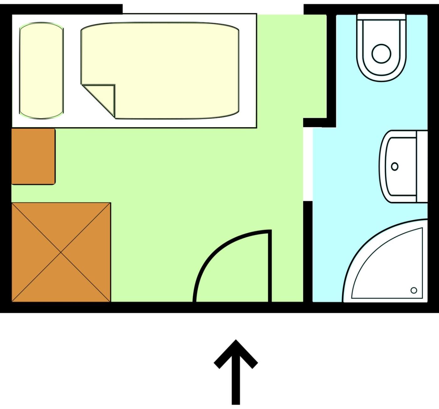 Single Room. Room with cable TV and a bathroom with a hairdryer. ;