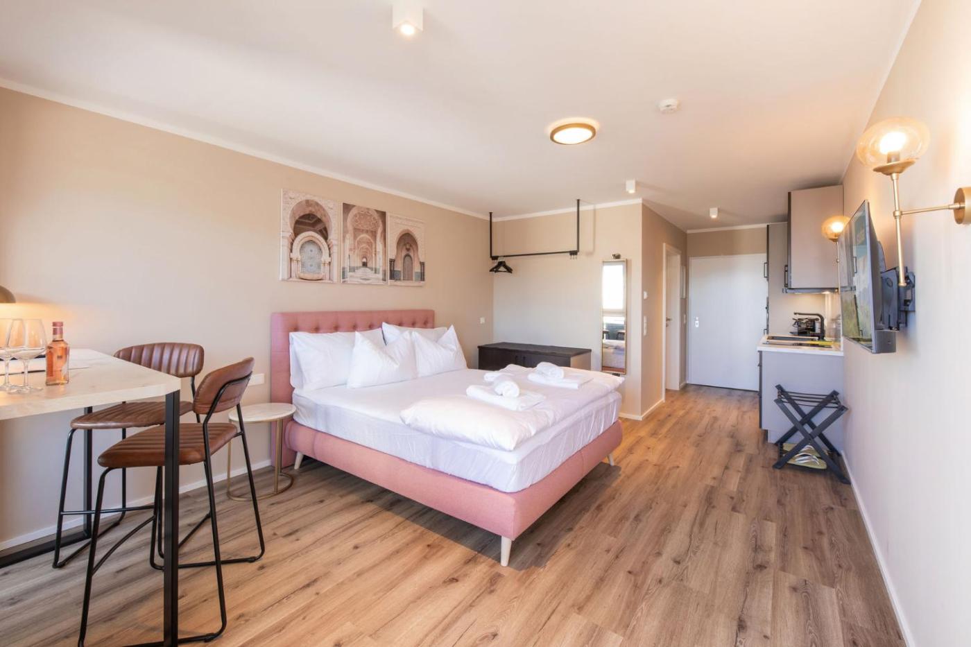 Studio with Spa Bath. This studio features a hot tub. Meals can be prepared in the kitchen, which comes with a stovetop, a refrigerator, a dishwasher and kitchenware. The studio provides a private entrance, soundproof walls, a terrace with garden views as well as a private bathroom featuring a shower. The unit offers 1 bed. ;