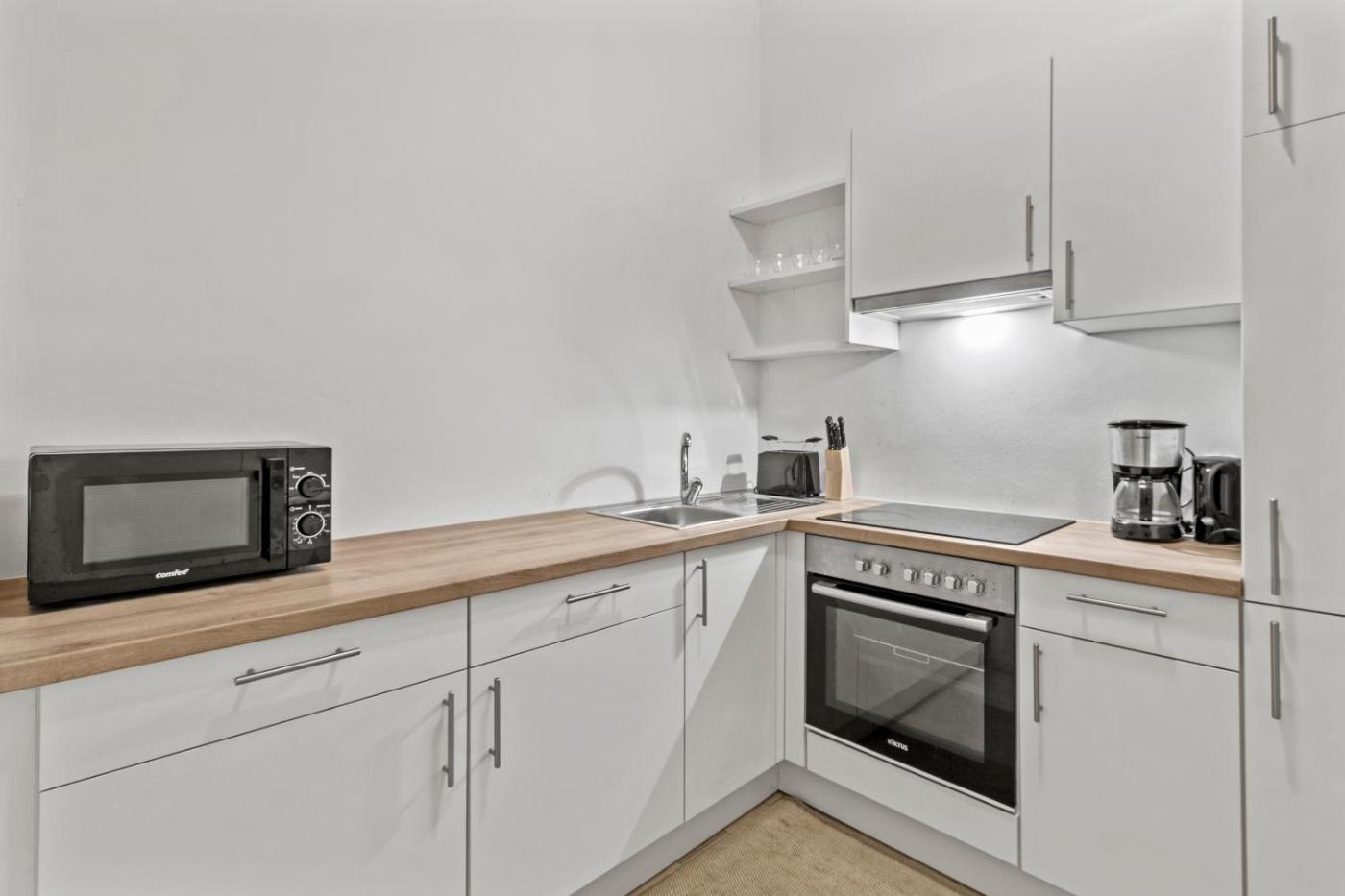 One-Bedroom Apartment. This apartment comprises 1 living room, 1 separate bedroom and 1 bathroom with a shower and a hairdryer. Meals can be prepared in the kitchen, which comes with a stovetop, a refrigerator, a dishwasher and kitchenware. The apartment features parquet floors, a seating area with a flat-screen TV, a tea and coffee maker, a dining area, as well as a wardrobe. The unit offers 3 beds.