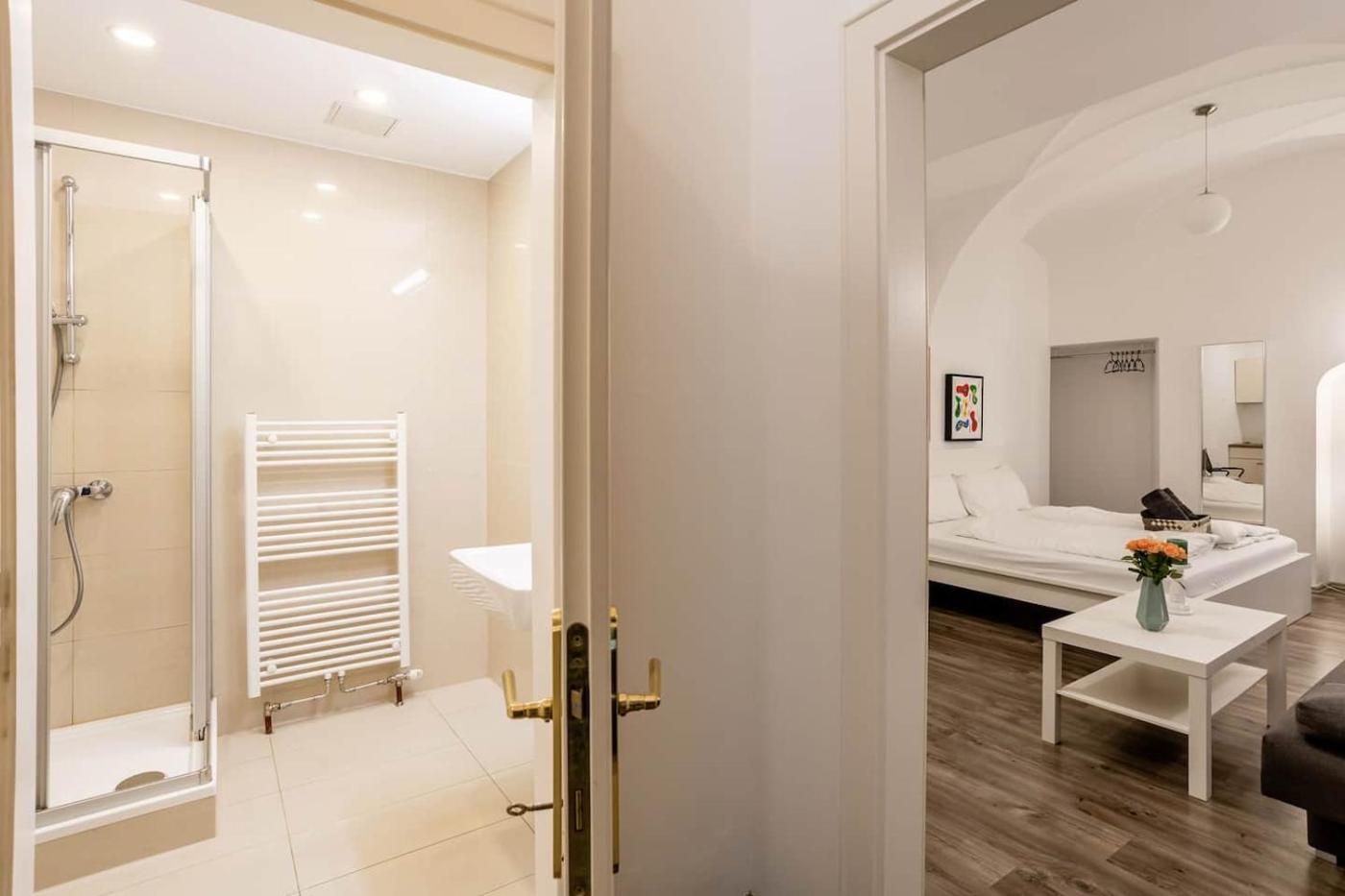 One-Bedroom Apartment. The air-conditioned apartment has 1 bedroom and 1 bathroom with a shower and a hairdryer. The apartments kitchenette is available for cooking and storing food. The apartment features a tea and coffee maker, a safe deposit box, heating, as well as a flat-screen TV with streaming services. The unit has 1 bed.
