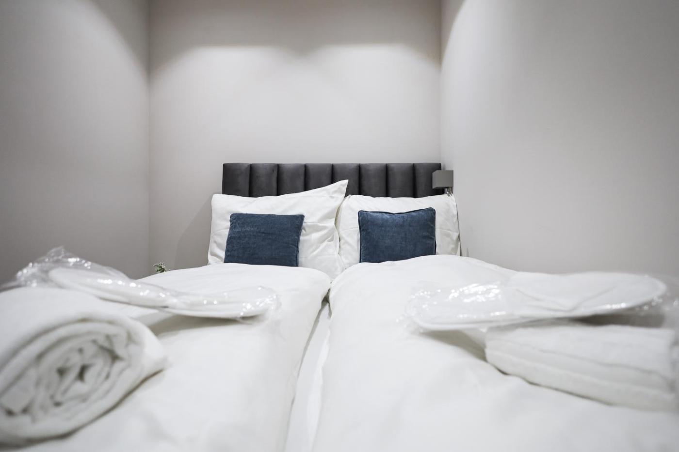 Two-Bedroom Apartment. This apartment includes 1 living room, 2 separate bedrooms and 2 bathrooms with a bath and free toiletries. In the well-fitted kitchen, guests will find a stovetop, a refrigerator, a dishwasher and kitchenware. This apartment is air-conditioned and has a seating area with a flat-screen TV, a washing machine, soundproof walls, a coffee machine, as well as a dining area. The unit has 3 beds.