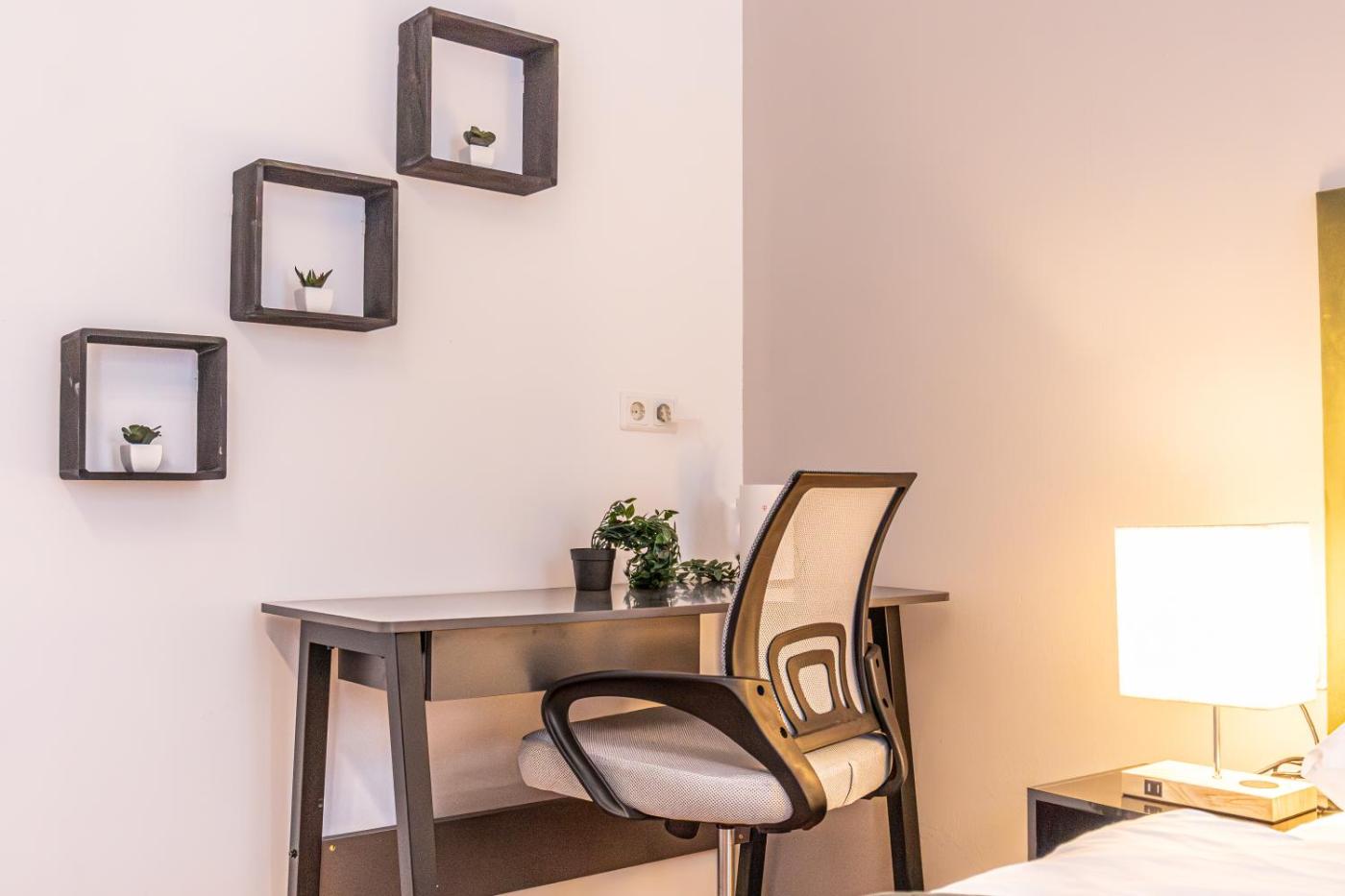 Two-Bedroom Apartment. This apartment consists of 2 bedrooms, a kitchen and 1 bathroom with a shower and a hairdryer. The fully equipped kitchen features a stovetop, a refrigerator, an oven and a microwave. The apartment provides a washing machine, a tea and coffee maker, a sofa, heating, as well as a flat-screen TV with streaming services. The unit offers 3 beds.