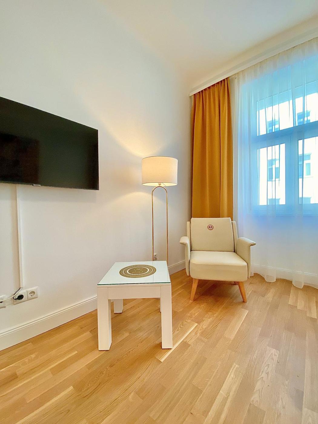 Standard Apartment. The air-conditioned apartment features 1 bedroom and 1 bathroom with a shower and a hairdryer. In the well-equipped kitchen, guests will find a stovetop, a refrigerator, a dishwasher and kitchenware. The apartment provides a washing machine, soundproof walls, a tea and coffee maker, a flat-screen TV with streaming services, as well as a quiet street view. The unit offers 1 bed. ;