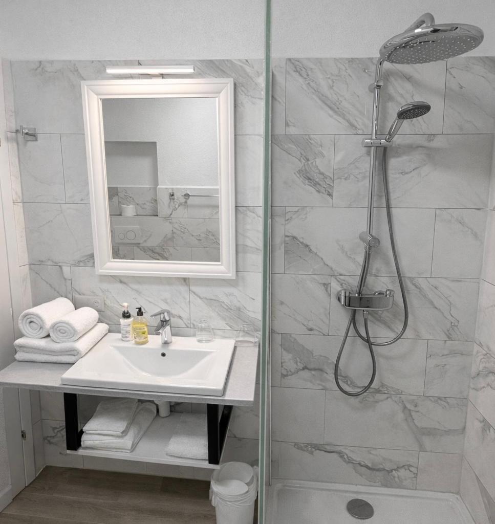 Triple Room with Balcony. The triple room features a dining area, a wardrobe, a terrace with mountain views as well as a private bathroom boasting a shower. The unit has 3 beds.